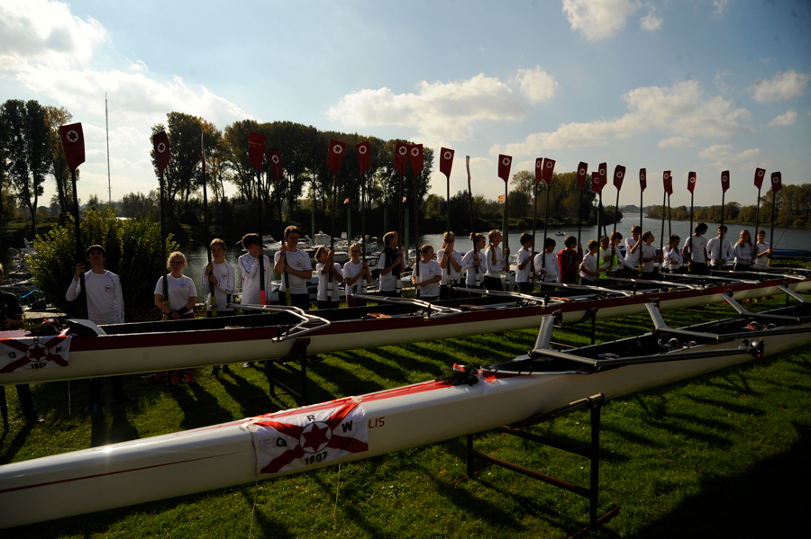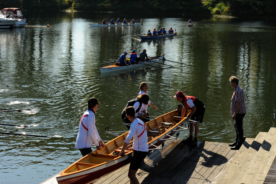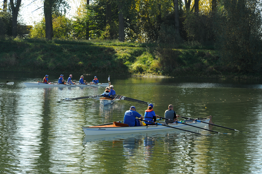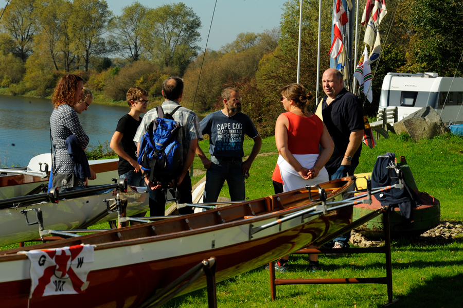Um 10 Uhr erreichten dann die meisten aktiven Mitglieder aus der Erwachsenen- und der Jugendabteilung den Yachthafen und machten sich auf zur letzten offiziellen Fahrt der Saison. Insgesamt 30 aktive Weseler Ruderer konnte man im Yachthafen und auf dem Auesee zählen.