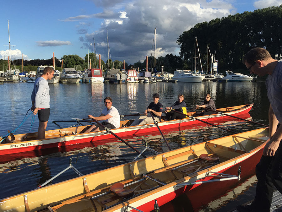 Unerwartet und überaus erfreulich: Ein ganze Clique hat sich aufgemacht, um das Rudern zu erlernen! Es fing im Englandurlaub an, als Vater und Tochter gemeinsam aufs Wasser schauten und Ruderer beobachteten, wie sie elegant über das Wasser glitten. In Wesel gibt es einen Verein, so der Vater, und beide beschlossen, es ... More