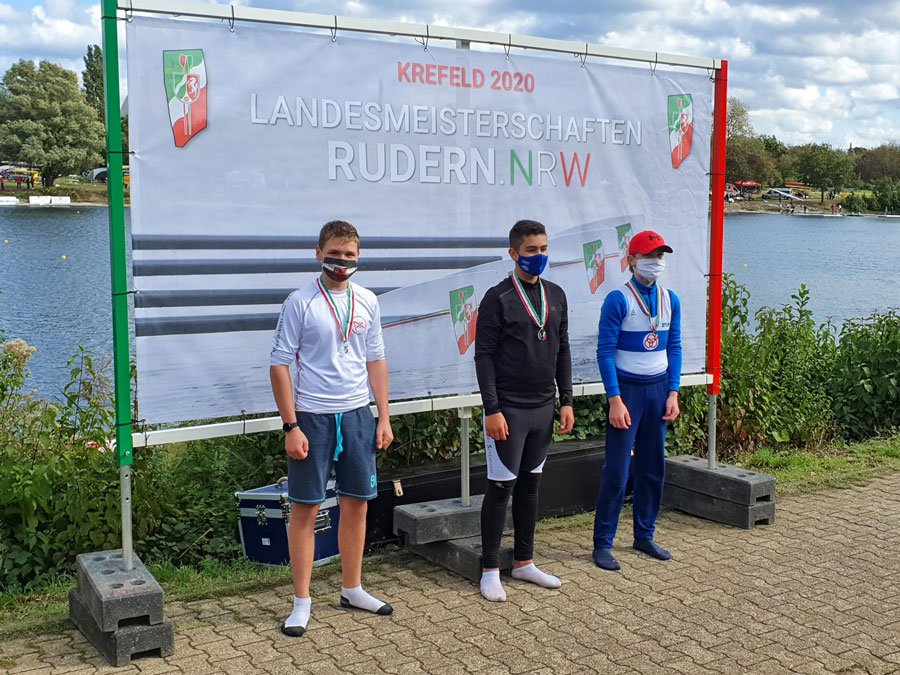 Bei der 40. Krefelder Ruder-Regatta gelingt Till Hansen im frisch getauften neuen Renneiner R(h)einhard gleich der erste Sieg im Leichtgewichts-Junior-Einer A. Als Leichtgewicht dürfen die 17 u. 18jährigen Ruderer maximal 67,5 kg auf die Waage bringen. Mit 3 Bootslängen Vorsprung konnte sich Till souverän im 1000-Met... More