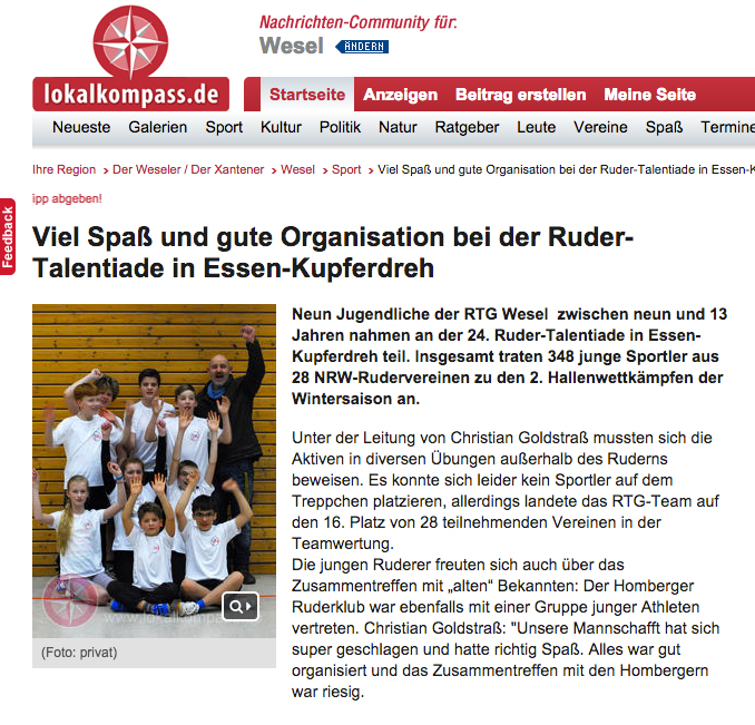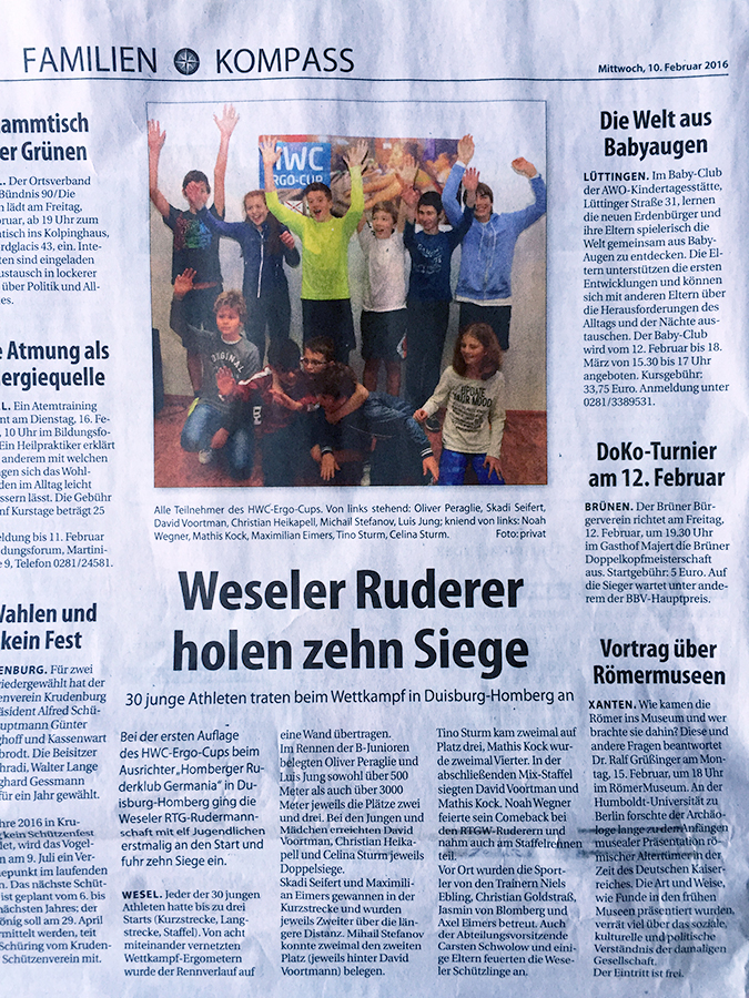 • 28. Januar 2016: RTG-Wesel schafft 10 Siege auf dem Ruderergometer: RP