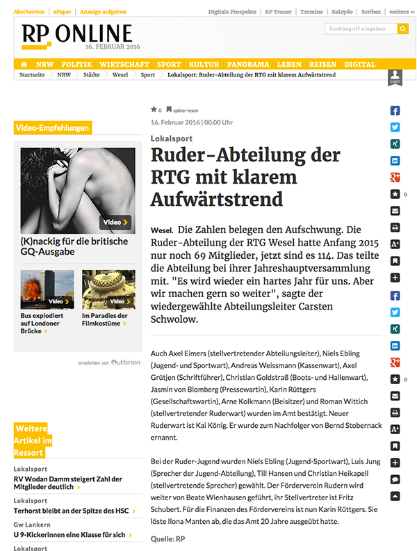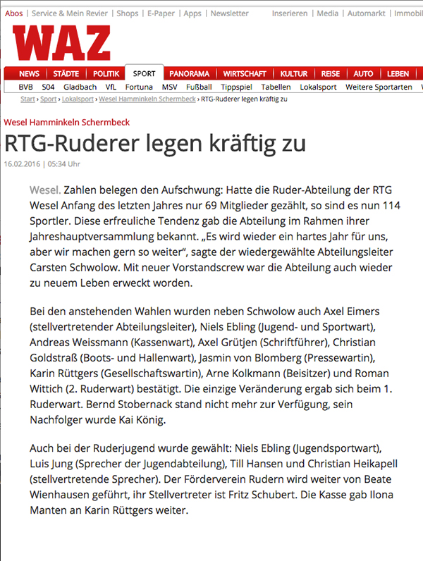 • 16. Februar 2016: Ruderer legen kräftig zu: NRZ