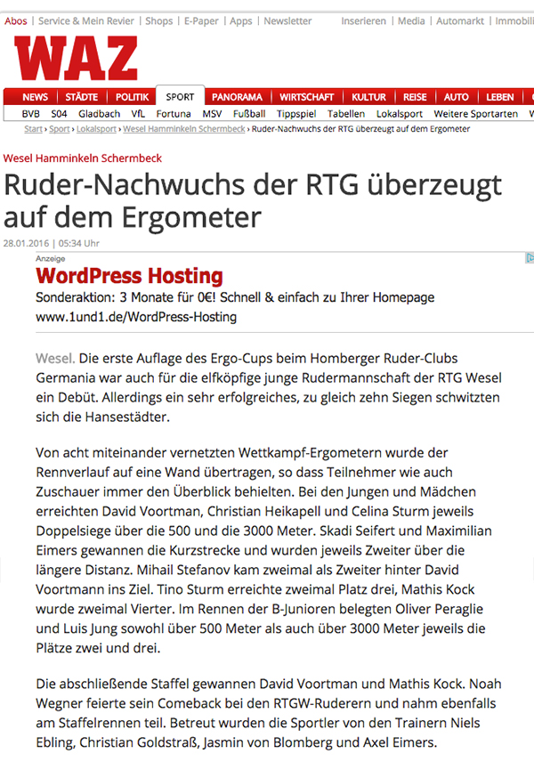 • 28. Januar 2016: Ruder-Nachwuchs der RTG überzeugt auf dem Ergometer: NRZ
