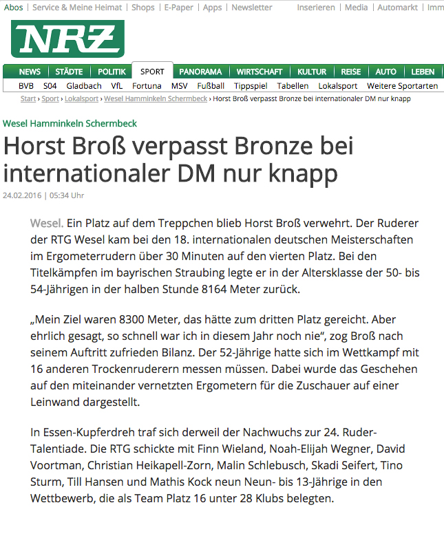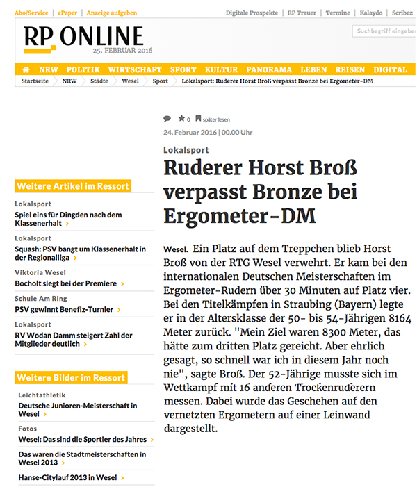 • 24. Februar 2016: Ruderer Horst Broß verpasst Bronze bei Ergo-DM: RP