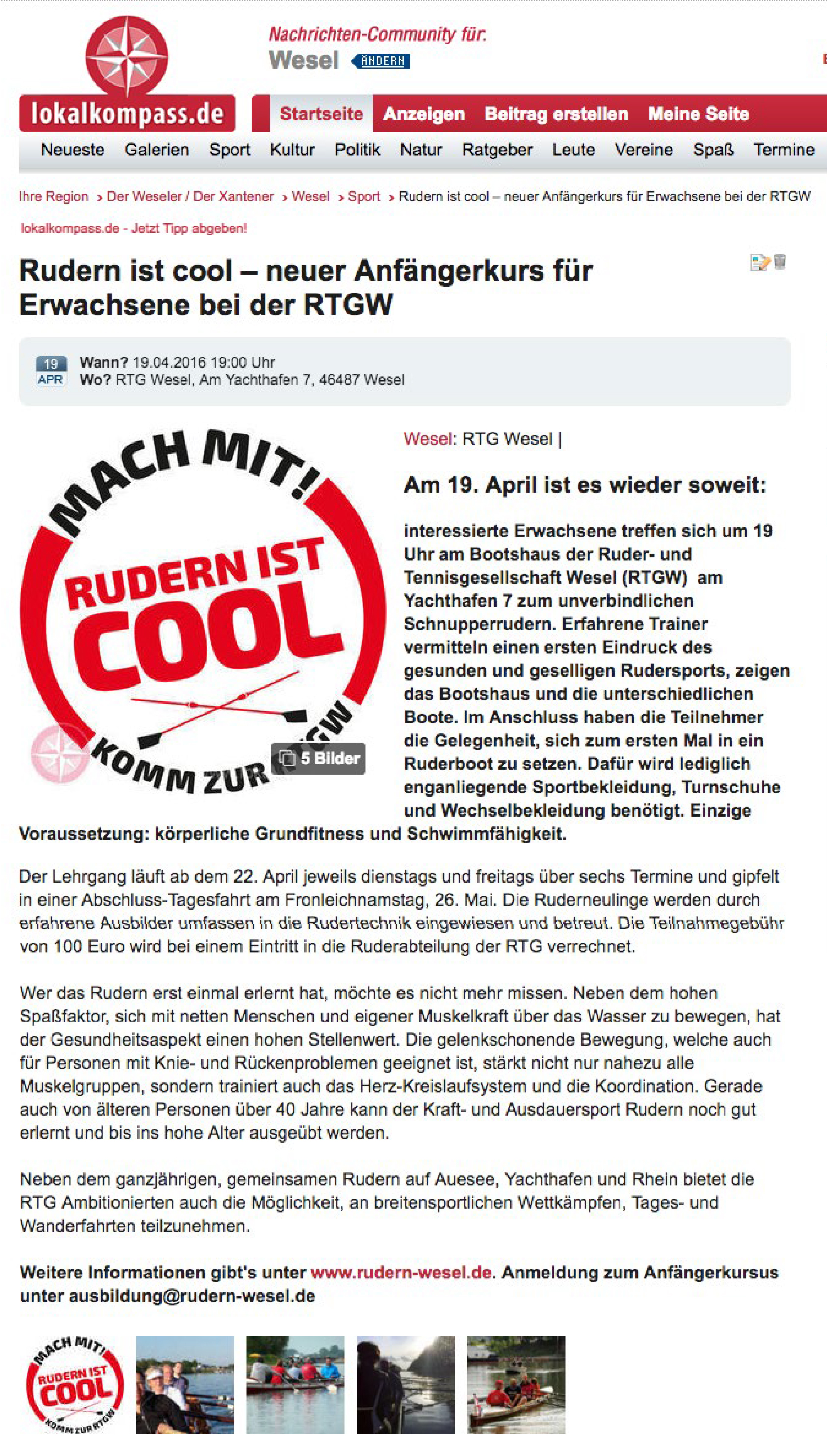 • 5. April 2016: Rudern ist cool – neuer Anfängerkursus für Erwachse: Lokalkompass
