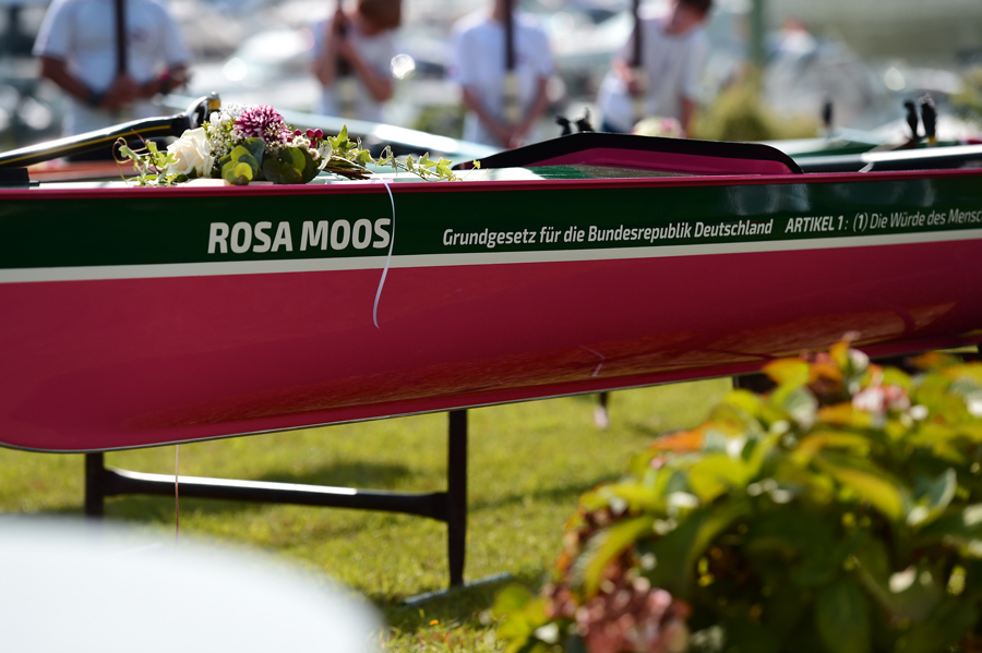 Die Spender wollen mit der Namenswahl und dem auffälligen Erscheinungsbild des Bootes in den Farben Rosa und Moosgrün dazu beitragen, dass das Schicksal der Jüdinnen und Juden in der Zeit des Nationalsozialismus’ niemals in Vergessenheit gerät. Beides soll dazu anregen, auf den verschiedenen Veranstaltungen, zu denen das Boot mitgenommen wird, ins Gespräch zu kommen und die Vergangenheit zu thematisieren. Nach Überzeugung der Spender ist es wichtig, dieses Thema im Dialog lebendig zu halten. Dies insbesondere vor dem Hintergrund der derzeitigen gesellschaftlichen Entwicklung. Rosa Moos geborene Löwenstein wurde 1864 geboren, lebte in Wesel und wurde 1942 nach Theresienstadt deportiert. Noch im gleichen Jahr wurde sie in Treblinka ermordet. In der Stadt Wesel erinnert bereits ein Stolperstein auf Höhe ihres ehemaligen Wohnhauses an ihr Schicksal und das vieler Millionen Opfer der Nazizeit. Das Boot ist unterdessen bereits auf Langstreckenregatten eingesetzt worden und sorgt so für den gewünschten Gesprächsstoff.