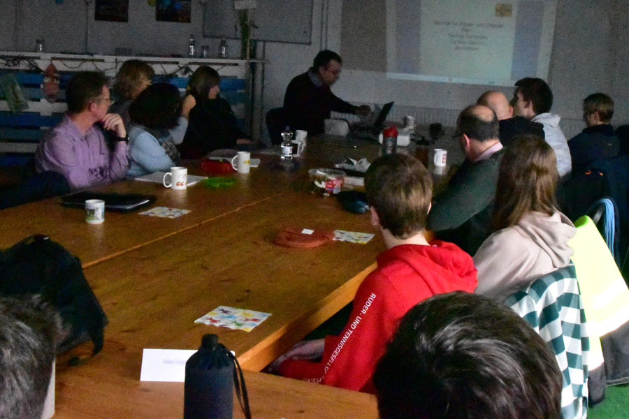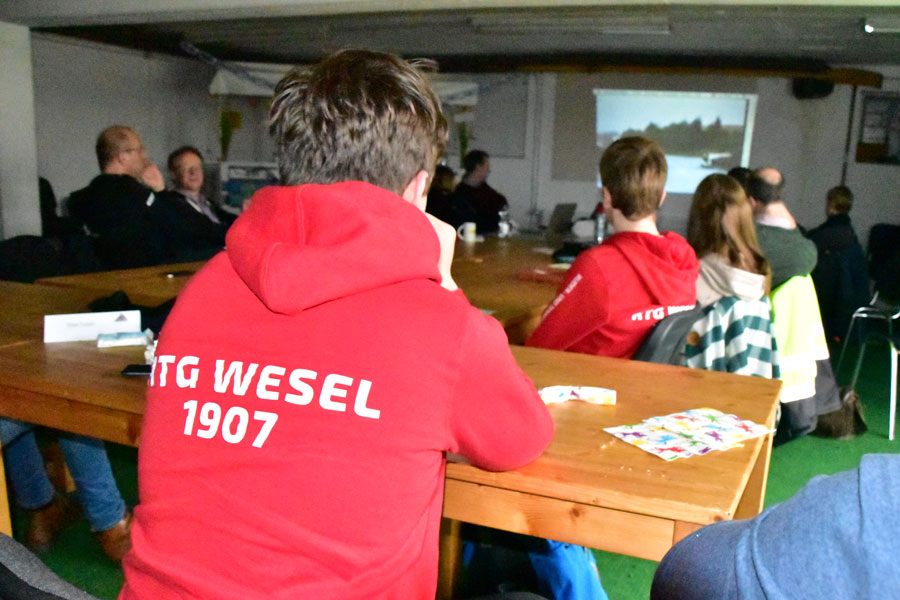 Rund 25 Ruderer haben sich Samstagnachmittag mit den Themen Steuern auf dem Rhein, Sicherheit auf dem Wasser, Großschiffahrt und Winterrudern – Kentern bei kalten Temperaturen befasst. Axel Grütjen und Jasmin von Blomberg mit Laptop und Beamer bewappnet, sensibilisierten die Zuhörer für die unterschiedlichsten Situationen, in die Ruderer geraten können. Videoclips zu Kenterungen, Großschifffahrt und Wellenverhalten veranschaulichten die unterschiedlichen Themenbereiche.